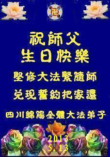 四川綿陽全體大法弟子祝師父生日快樂!賀法輪大法洪傳二十一週年!