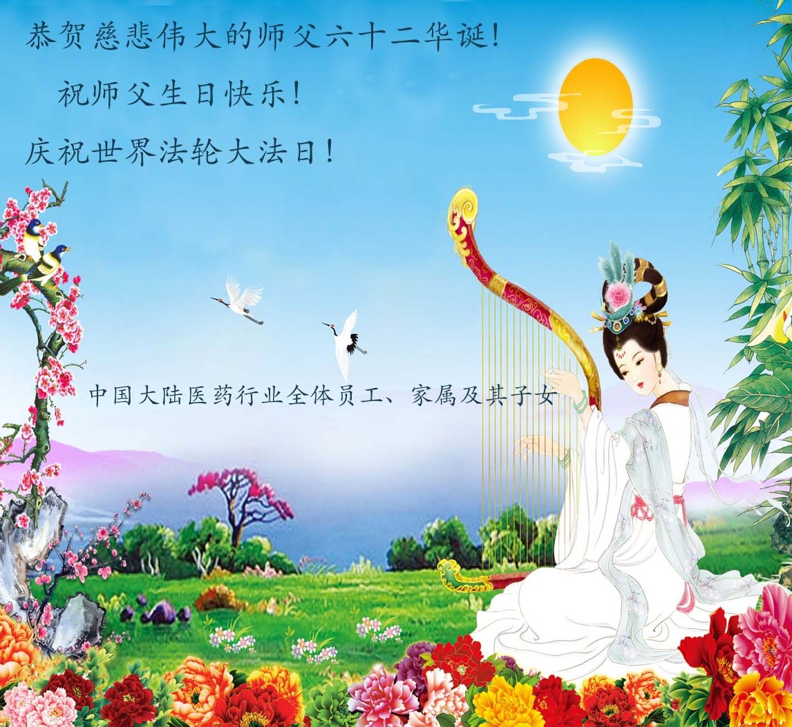 中國大陸醫藥行業大法弟子率公司全體員工恭祝師尊生日快樂!