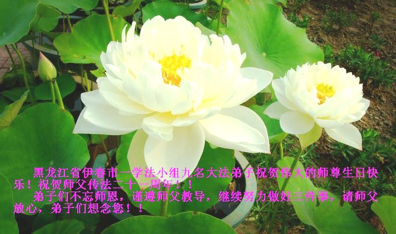 黑龍江伊春一老年學法小組大法弟子恭祝師尊華誕暨世界法輪大法日!