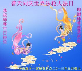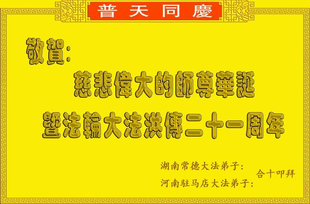 湖南常德大法弟子、河南駐馬店大法弟子敬賀慈悲偉大的師尊華誕暨法輪大法洪傳二十一週年!