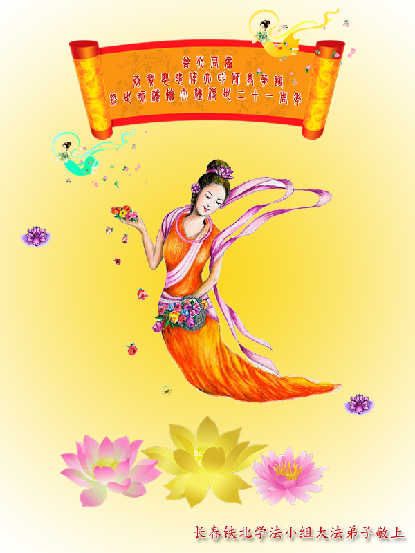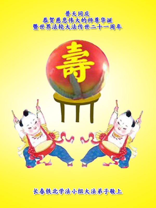 吉林省長春寬城學法小組大法弟子恭賀慈悲偉大的師尊華誕暨世界法輪大法傳世二十一週年!
