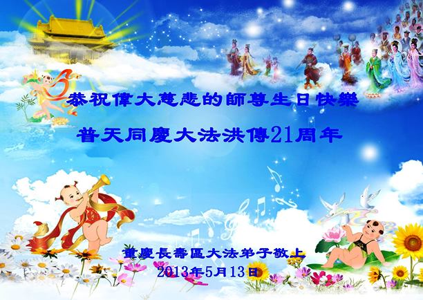 重慶長壽區大法弟子恭祝偉大慈悲的師尊生日快樂!普天同慶大法洪傳21週年!