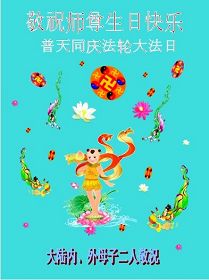 大陸內、外母子二人敬祝師尊生日快樂!普天同慶法輪大法日!