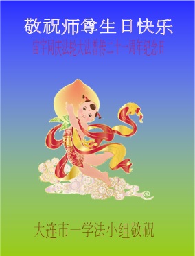遼寧省大連一學法小組大法弟子敬祝師尊生日快樂!宙宇同慶法輪大法普傳二十一週年紀念日