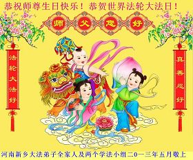 河南新鄉一家庭資料點恭祝師尊生日快樂!恭賀世界法輪大法日!
