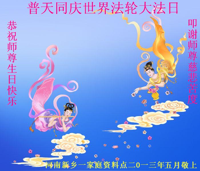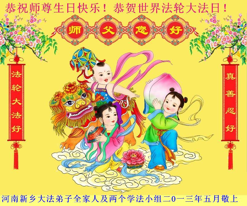 河南新鄉大法弟子恭祝師尊生日快樂!恭賀世界法輪大法日!