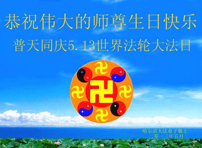 黑龍江哈爾濱雙城市大法弟子恭祝慈悲偉大的師尊生日快樂!恭賀5•13世界法輪大法日!