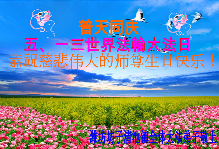 山東省濰坊大法弟子恭賀師尊生日快樂!慶祝世界法輪大法日!