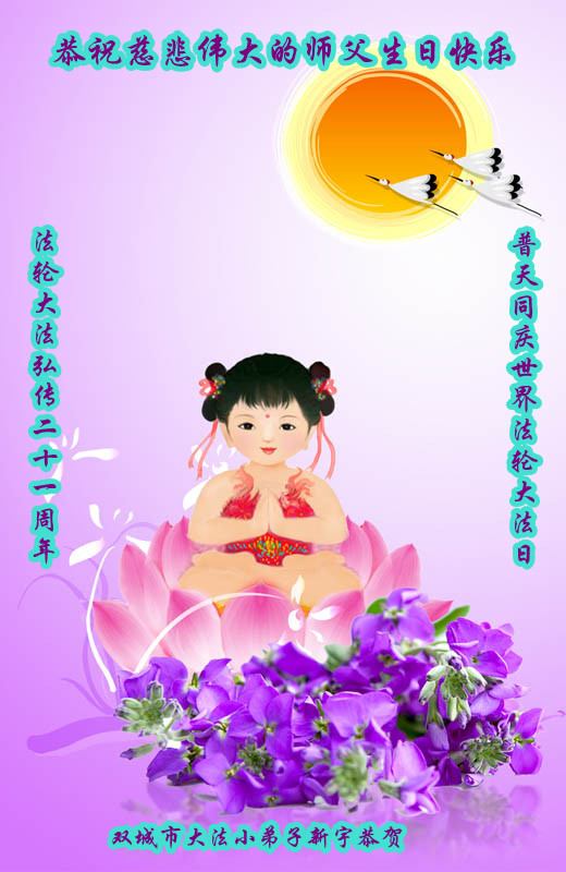 雙城新城區的大法弟子恭祝師尊華誕!恭賀大法洪傳二十一週年!