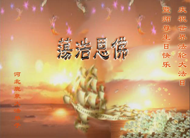 慈悲偉大的師尊您好!生日快樂!弟子們真的很思念您。傳法二十一年,歷經雪雨風霜,迫害十四載,直面妖言毀謗。是您!慈悲無上的師尊,帶領著我們走過這蒼宇間的浩劫。帶來全新宇宙圓容不滅的希望!二十一年,您為眾生承受了多少?我們無法想像!二十一年,您為弟子操勞了多少?我們無法估量!威德之巨,宇宙眾神都在向您叩首。洪恩之廣,無量眾生都在向您問候。