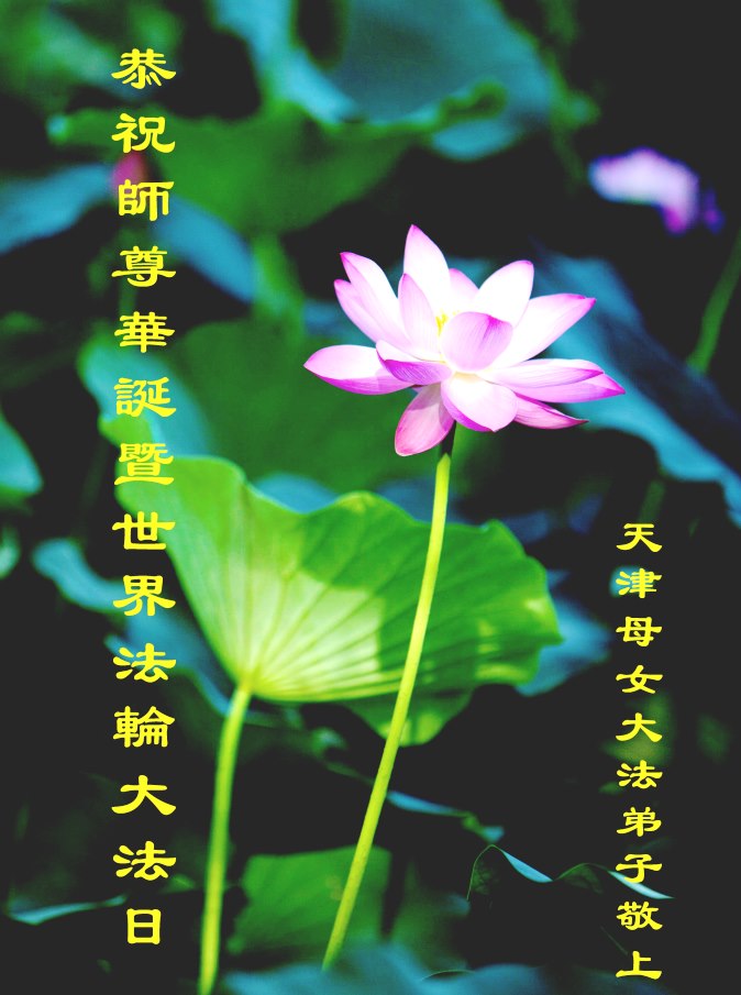 天津母女大法弟子恭祝師尊華誕暨世界法輪大法日!