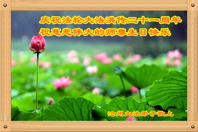 河北省滄州大法弟子恭賀法輪大法洪傳二十一週年!恭祝慈悲偉大的師尊生日快樂!