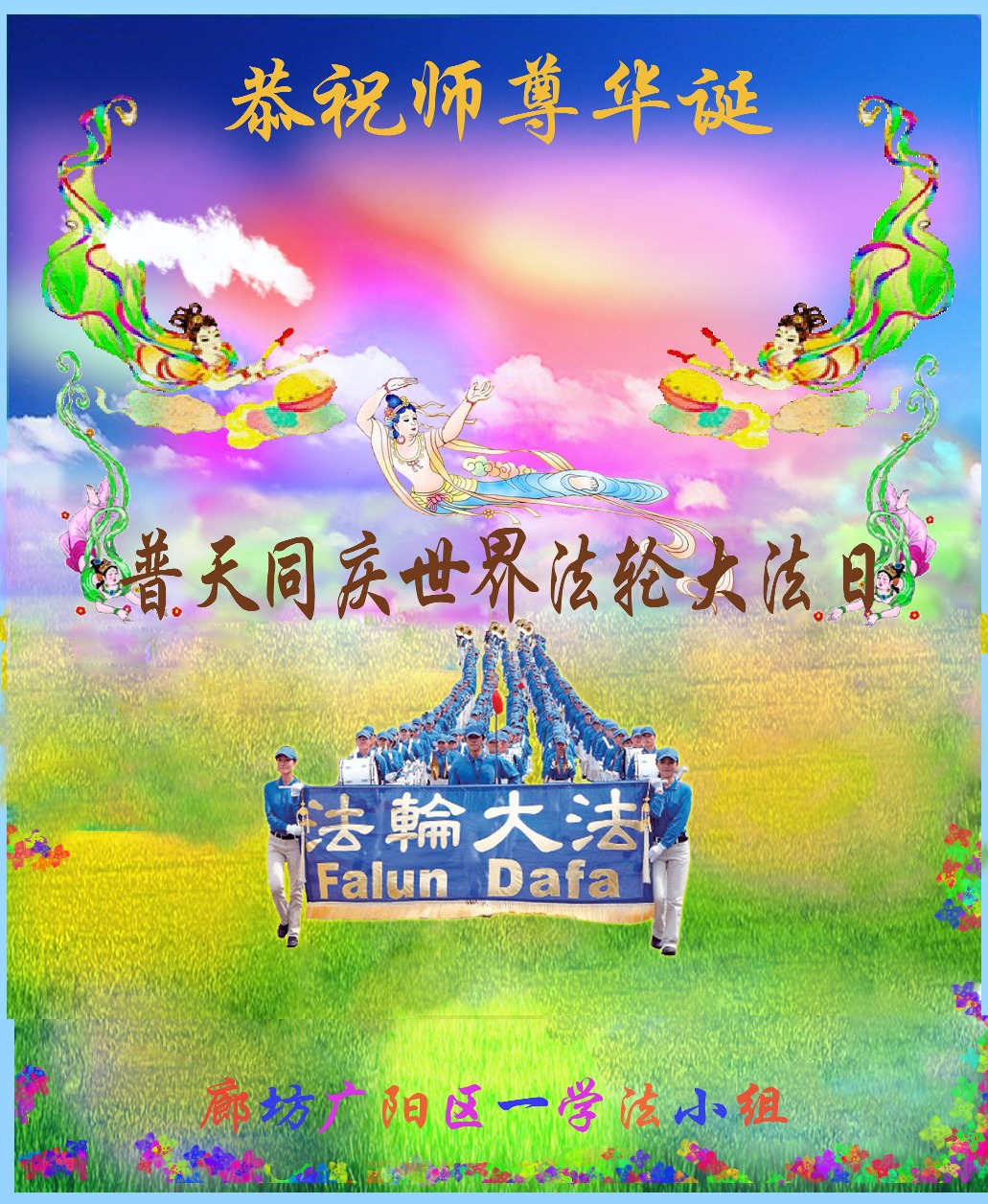 河北省廊坊市廣陽區一學法小組恭賀師尊華誕!恭祝師父生日快樂!慶祝「5.13」世界法輪大法日暨法輪大法洪傳二十一週年!