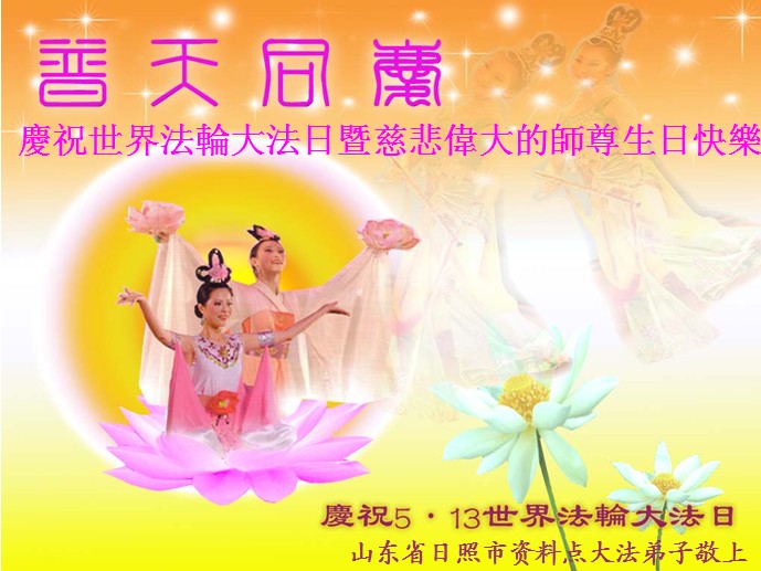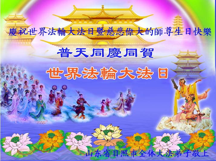 山東省日照市全體大法弟子恭祝師父生日快樂!慶祝世界法輪大法日!