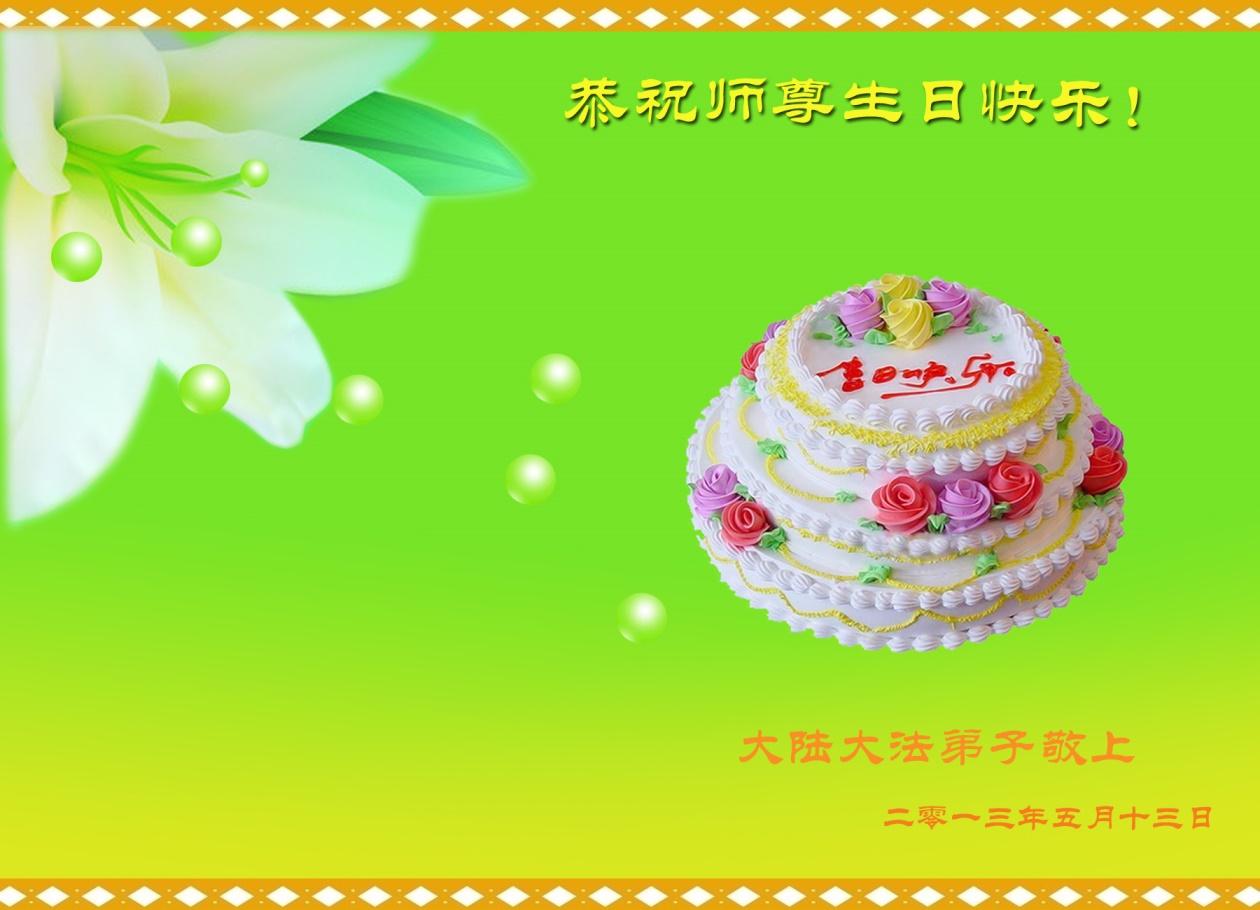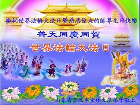 山東省日照市資料點大法弟子恭祝師父生日快樂!慶祝世界法輪大法日!