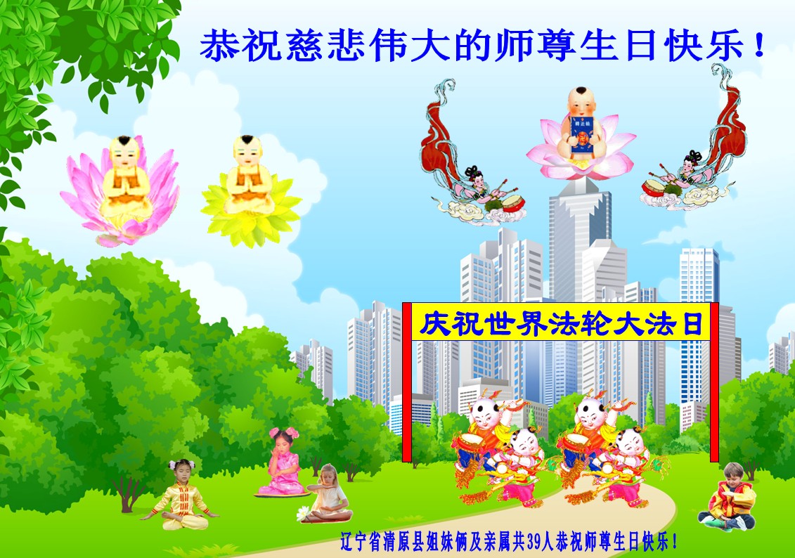 遼寧省清原縣十九名大法弟子及家人恭祝師尊生日快樂!