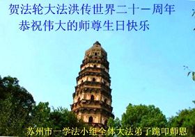 蘇州市一學法小組全體大法弟子恭祝偉大慈悲的師尊生日快樂暨法輪大法洪傳二十一週年!