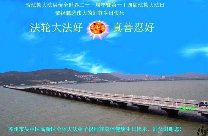 蘇州市吳中區高新區全體大法弟子恭祝偉大慈悲的師尊生日快樂!祝賀法輪大法洪傳二十一週年!