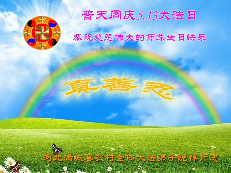 河北滿城縣農村全體大法弟子恭祝慈悲偉大的師尊生日快樂!慶祝大法洪傳二十一週年!