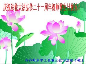 齊齊哈爾大法弟子恭祝師父華誕!慶祝法輪大法洪傳二十一週年!