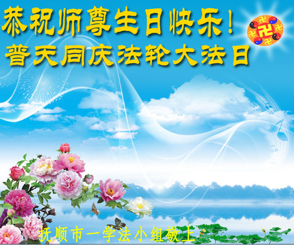 撫順市一學法小組恭祝師尊生日快樂!普天同慶法輪大法日!