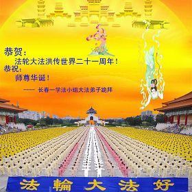 長春一學法小組恭祝大法洪傳世界二十一週年!恭祝師尊華誕!