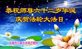 長春三家大法弟子恭祝師父華誕暨慶賀法輪大法日!