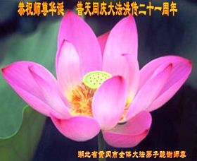 值此世界法輪大法日暨師父六十二華誕之際,石家莊一大法弟子向師尊問好!在此叩拜師父!謝謝師父的救度之恩!