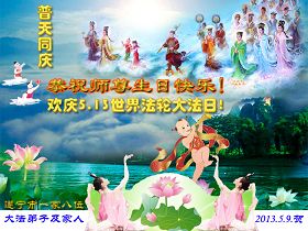 中原油田大法弟子恭祝慈悲偉大的師尊生日快樂!喜迎法輪大法洪傳二十一週年!