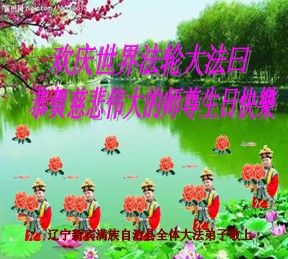 遼寧新賓滿族自治縣大法弟子恭祝慈悲偉大的師尊生日快樂!同慶法輪大法洪傳二十一週年!