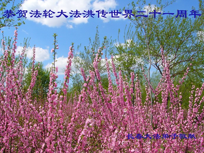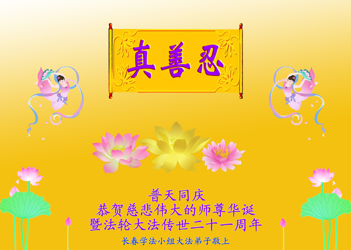 長春寬城學法小組大法弟子恭祝慈悲偉大的師尊華誕暨法輪大法傳世二十一週年!