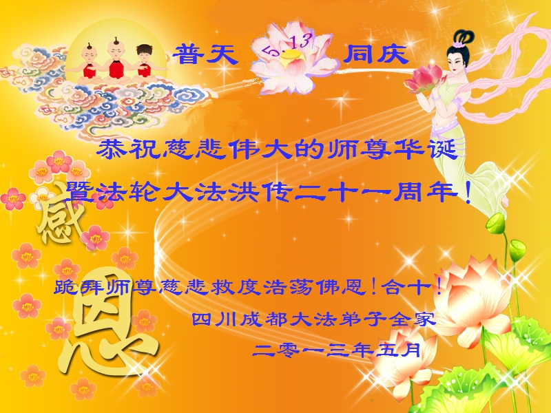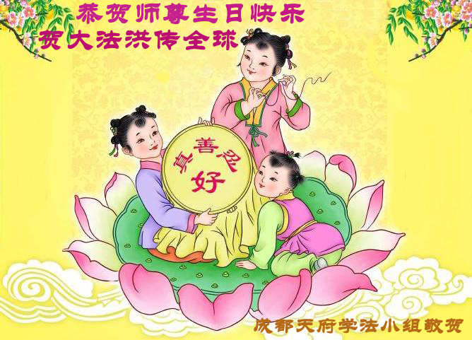 四川成都大法弟子恭祝慈悲偉大的師尊生日快樂!