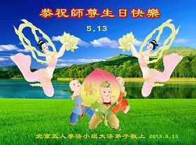 北京五大法弟子恭祝慈悲偉大的師尊生日快樂!