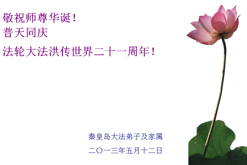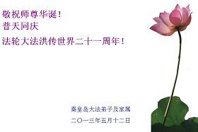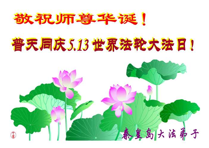 秦皇島大法弟子恭祝慈悲偉大的師尊生日快樂!