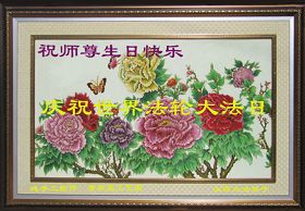 敬以十字繡「法輪大法好」「富而有德」獻給世界法輪大法日!