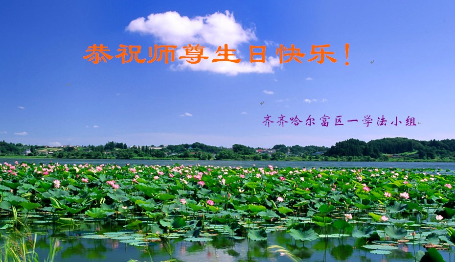 齊齊哈爾富拉爾基區一學法小組大法弟子恭祝慈悲偉大的師尊生日快樂!同時恭祝世界法輪大法日暨法輪大法洪傳二十一週年!