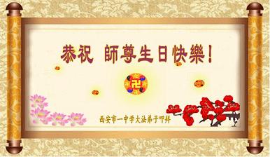 西安市大法弟子恭祝慈悲偉大的師尊生日快樂!