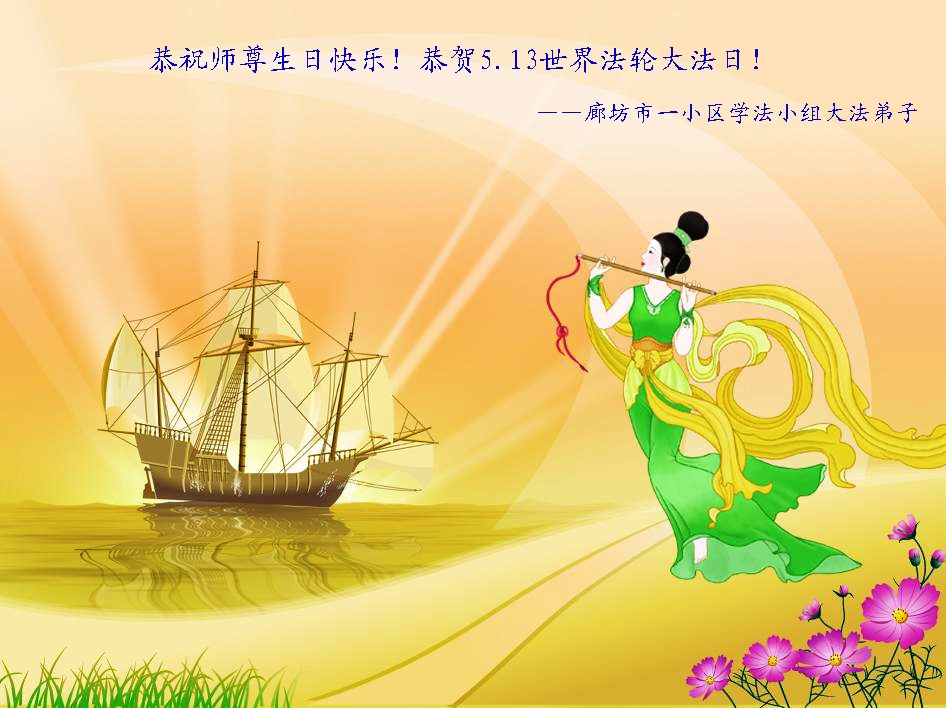 廊坊市一小區學法小組全體大法弟子恭祝慈悲偉大的師尊生日快樂!恭賀5•13世界法輪大法日!