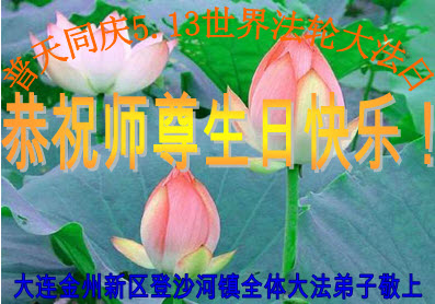 大連金州新區登沙河鎮全體大法弟子恭祝師尊生日快樂!