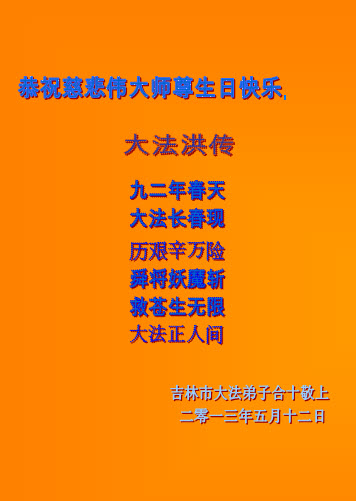 祝師尊華誕!賀五一三世界大法日!慶祝大法洪傳21週年!