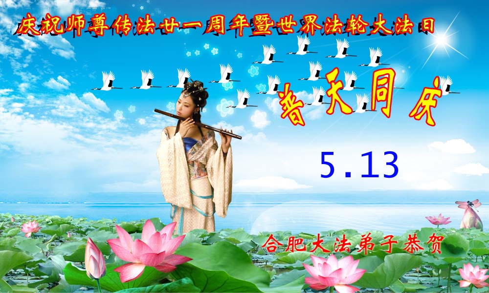 恭祝偉大師尊華誕!恭賀法輪大法傳世二十一週年!在這普天同慶的喜慶日子裏,我們安徽省某市二個普通的修煉大法弟子家庭,無比感謝師父的慈悲苦度。