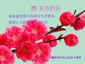 大陸安徽大法弟子恭賀師父華誕暨世界法輪大法日!向師父奉上最崇高的敬意,師父您太辛苦了!