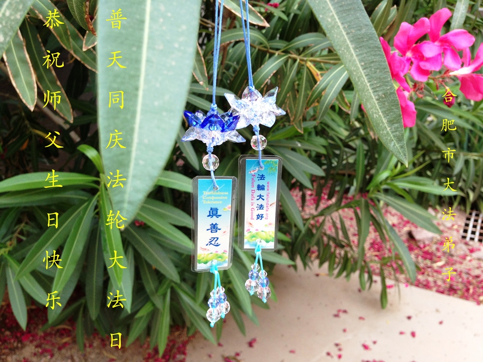 我是合肥高校的一名學生,在外求學,幸得師尊精心安排同修與我相識,使我有一個可以交流的環境。弟子自知做的不夠好,我一定在今後日子裏勇猛精進,做好三件事,不辜負師尊期望。值此世界法輪大法日,我與幾位同修恭祝師尊生日快樂!