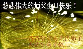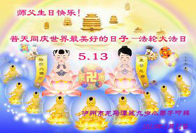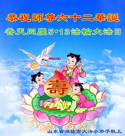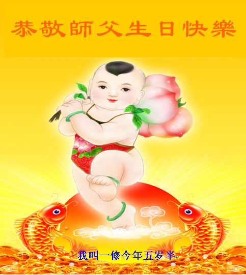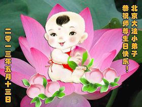 上至八十多歲的老年大法弟子,下至一歲多的大法小弟子,祝慈悲偉大的師尊生日快樂!願師父少一些操勞,多一些欣慰。我們一定不負師父慈悲苦度,跟上正法進程,做好三件事,整體配合,助師正法,走好剩下的路。跟師父回家。