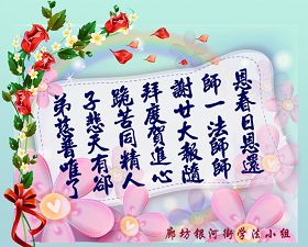 在這普天同慶的日子裏,弟子們懷著無比的心情向偉大的師父表示最崇敬的問候。「師父華誕快樂!師父您辛苦了!」家人大法弟子表示「一定正念正行走正大法路。」家中小弟子也表示「感謝師父慈悲苦度,弟子會走好以後的路」。弟子本人也深知修煉機緣的珍貴,也深感師父的佛恩浩蕩,在以後的日子裏一定會珍惜師父為弟子所做的一切,做好三件事,助師救度更多的眾生。