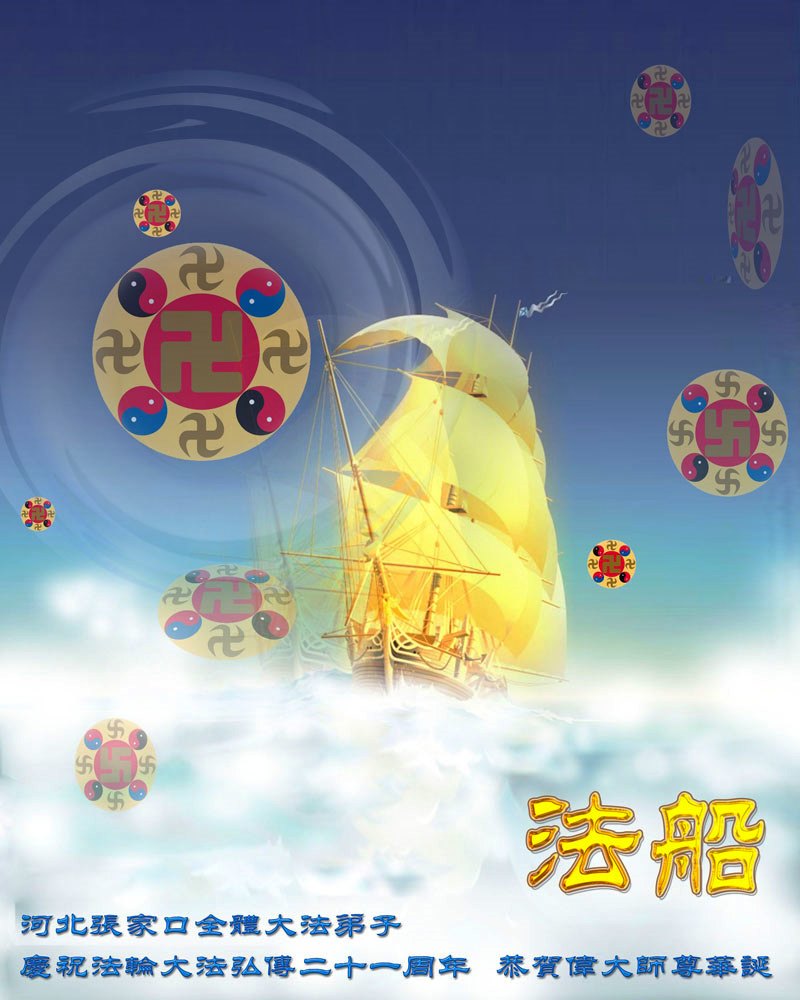 張家口大法弟子恭賀513世界法輪大法日暨法輪大法洪傳世界21週年!同時恭祝慈悲偉大的師尊生日快樂!