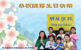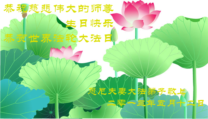在這寰宇同慶的日子裏,弟子叩首,遙拜恩師!師父您辛苦了!千言萬語道不盡對師父的感恩,弟子惟有牢記師父的教誨,做好三件事,多學法,學好法,多救人,廣傳真相,精進實修,才不辜負師父的慈悲苦度!