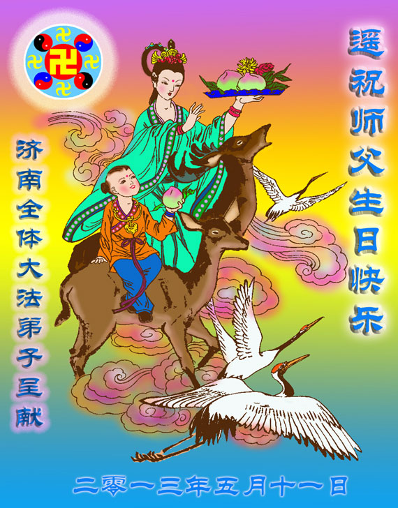 山東濟南大法弟子賀大法洪傳二十一週年!恭祝師父華誕!師父辛苦了!