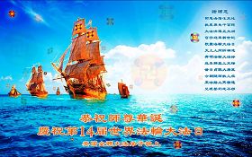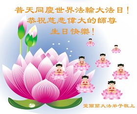 謝師恩師恩浩蕩化天地救度眾生千百億大法洪傳五大洲穹宇迎來新世紀歡慶法輪大法日天上人間訴神跡齊頌法輪大法好返本歸真上天梯昔日貞觀大唐風今朝隨師救人疾正法路上再精進兌現誓約志不移