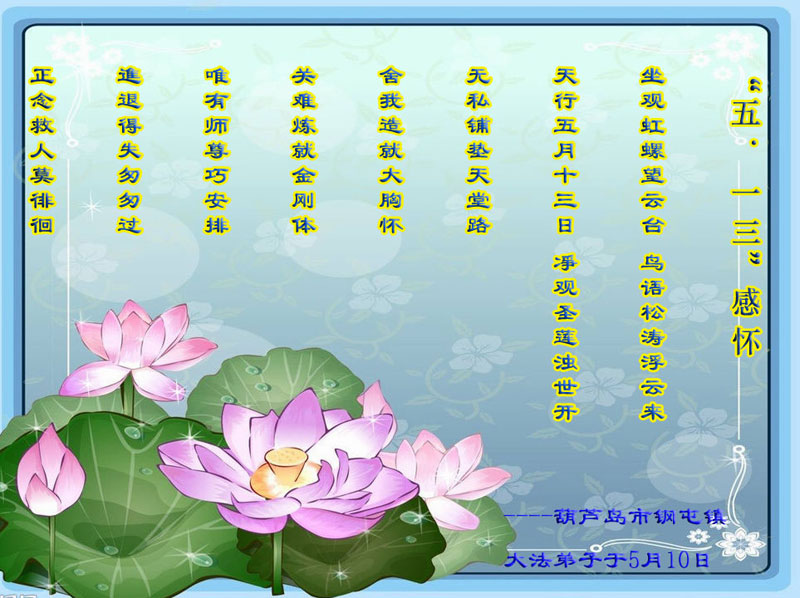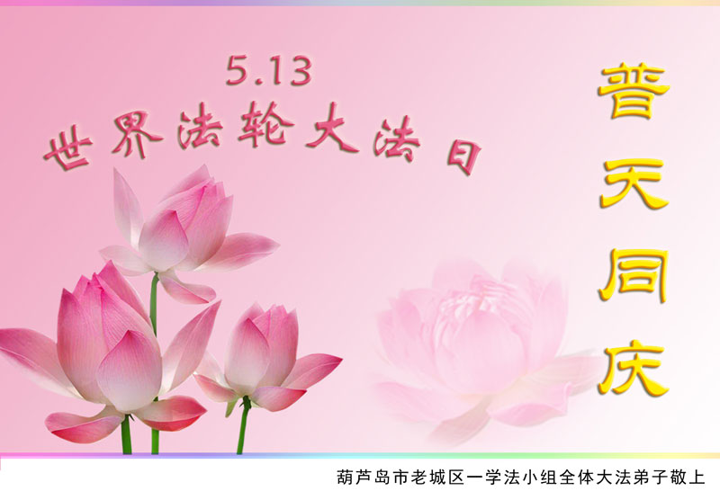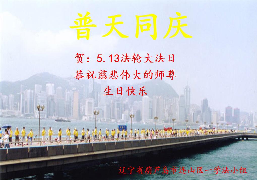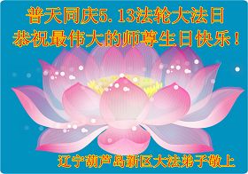遼寧省葫蘆島市後山一學法小組熱烈祝賀「五一三」世界法輪大法日;恭祝偉大的師尊生日快樂!